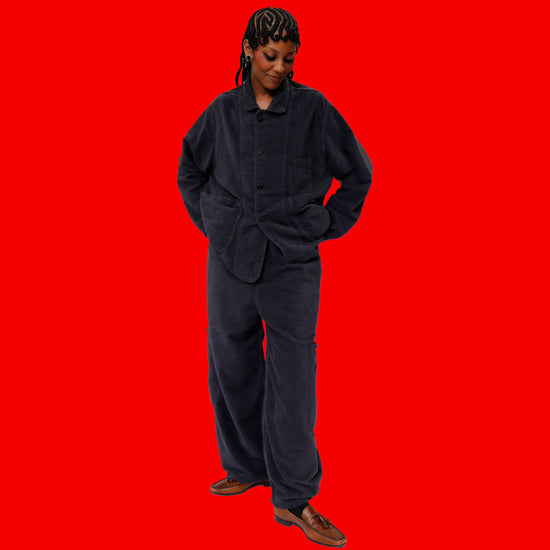 Chunky cotton corduroy cut horizontally with 5 big pockets.