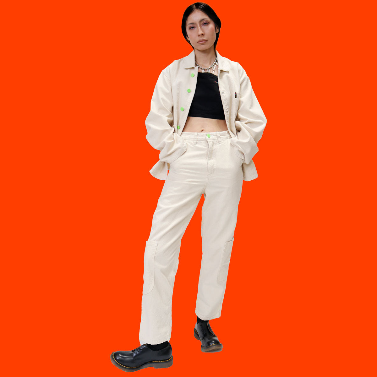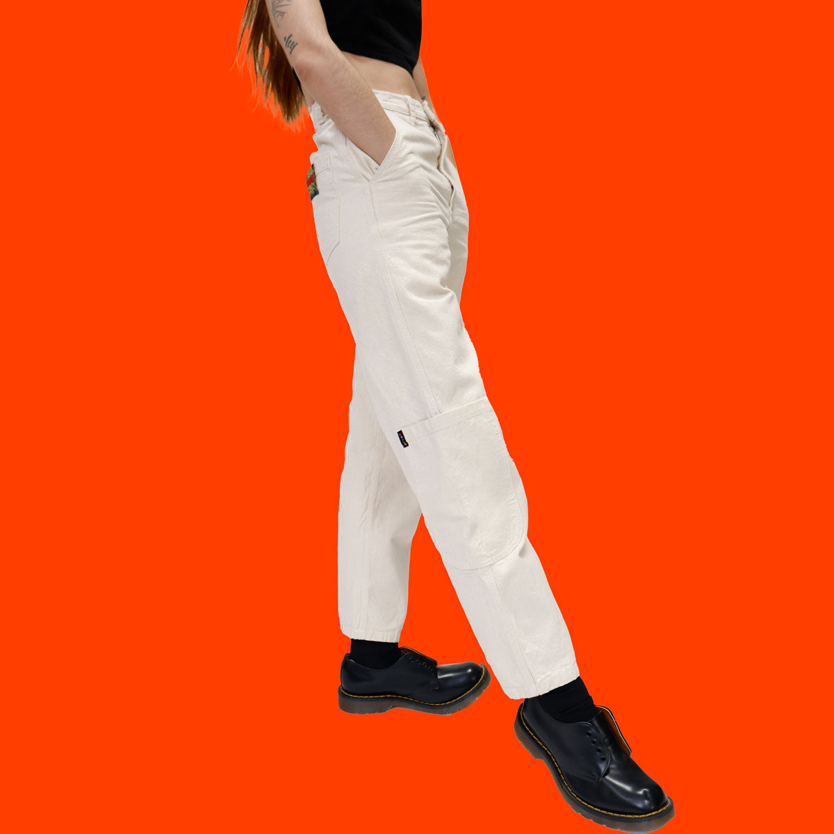 柔らかいコットン キャンバスで作られたストレート レッグ パンツ。小麦粉! 低グリセミック指数のパンツが登場。シェフ パンツのサイズより 1 サイズ小さいものをご注文ください。