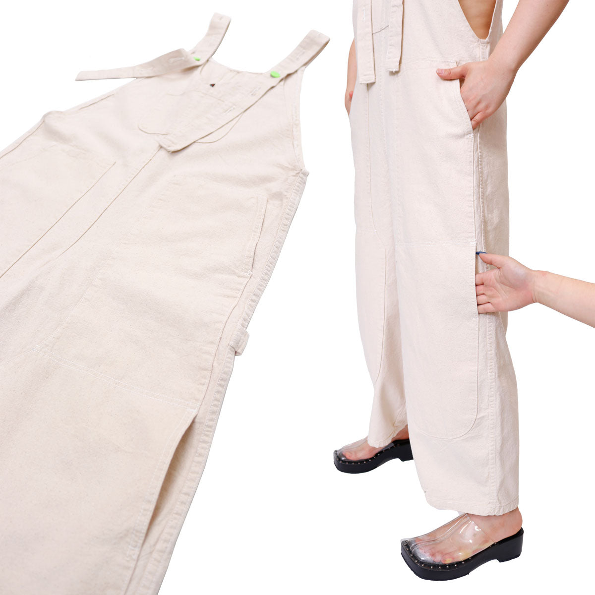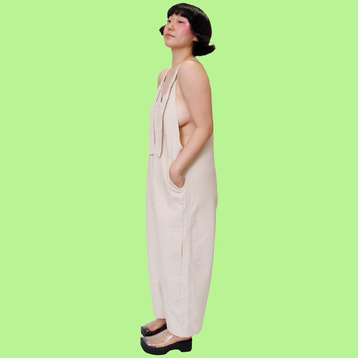 NEW OVERALLS* Cropped double-knee cotton overalls. Follows the chef pant in spirit. Infinite pockets (6!!). If you want a longer leg, order a size up.