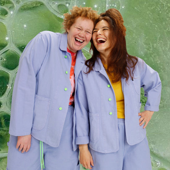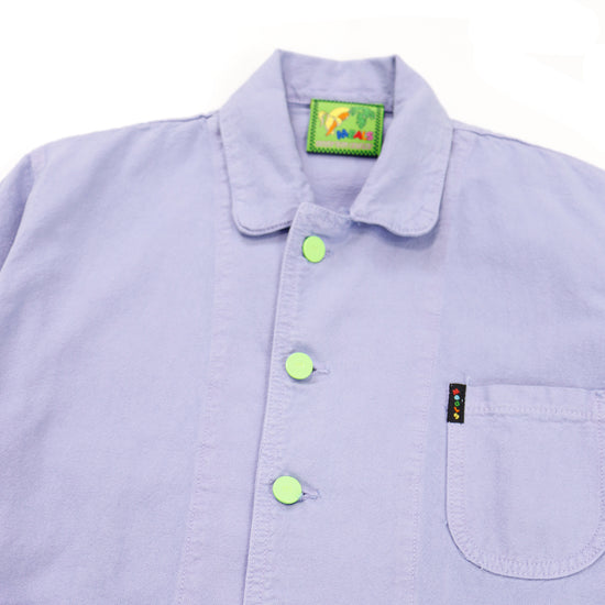 Hearty canvas jacket. Lavender, right? Full cut. Big pockets for sandwiches. Sleeves are made long for cuffing or altering to customize your length. Soft-washed cotton. Sleeves are made long for cuffing or altering to customize your length.