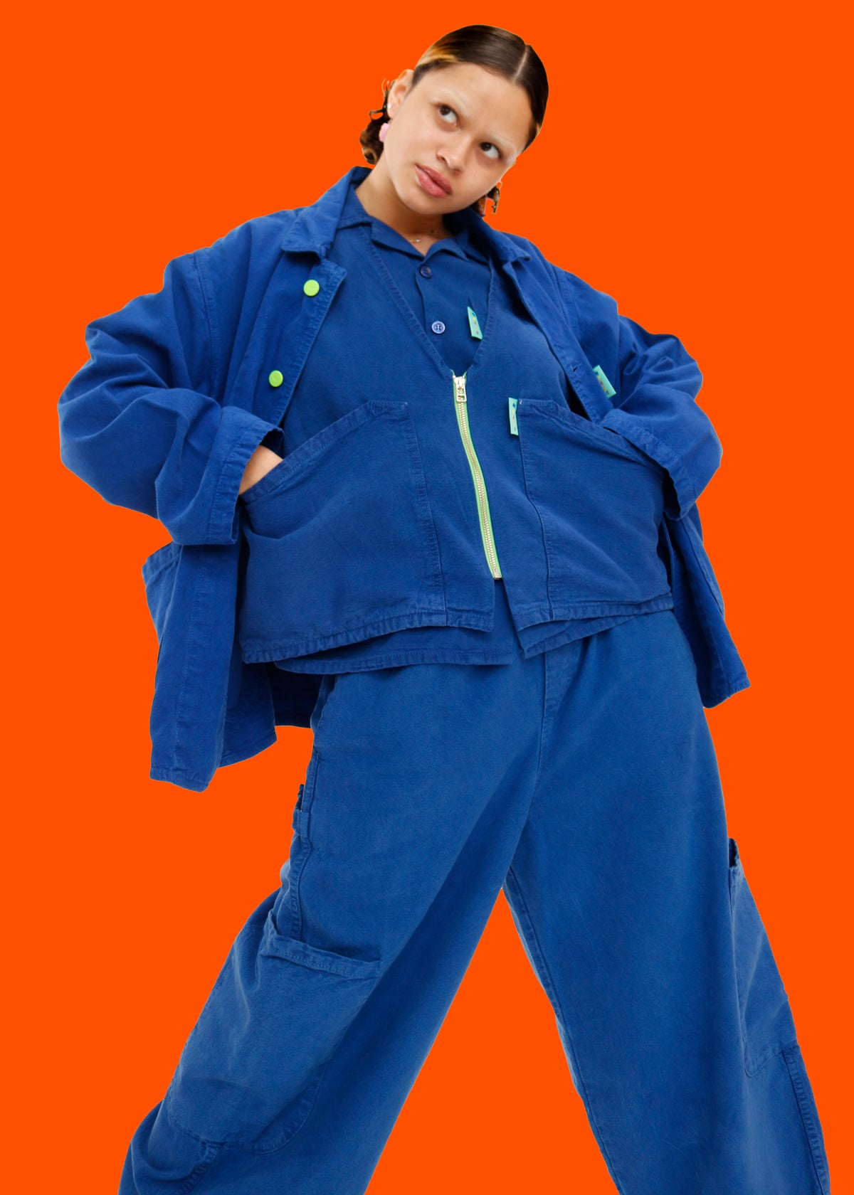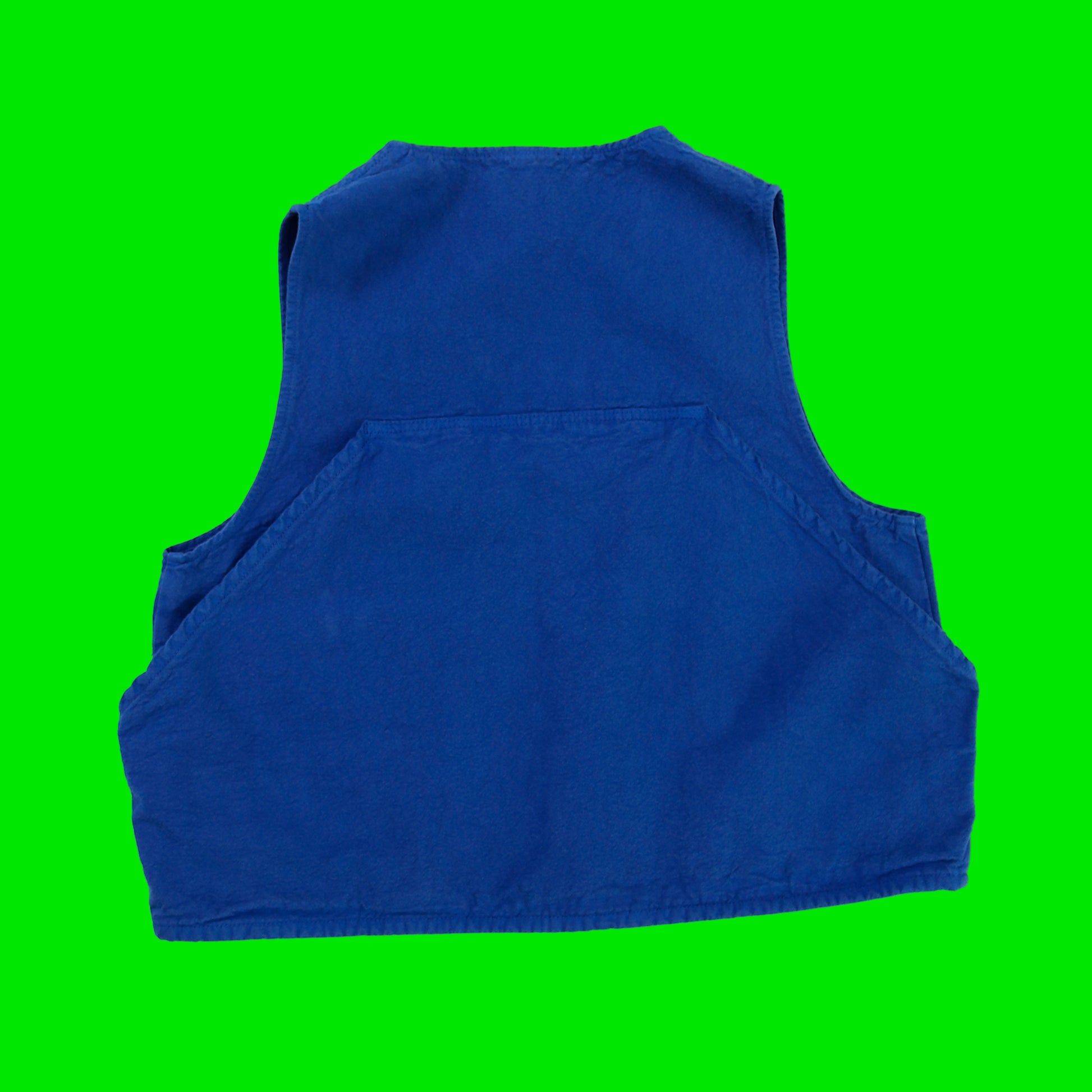 A hunting vest kinda. 10 oz heavy canvas with front patch pockets and a massive carrier pocket on the back (think 16” laptop). Zip closure in front. Oversized. Take your normal size. Adds huge pockets to everything. Leave the bag at home, fella.