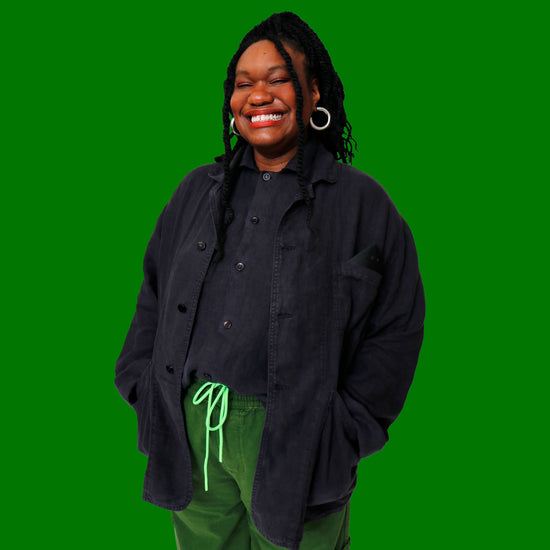 Linen jacket. Oversized cut. If you would like a more fitted look, order a size down. Big pockets for sandwiches. Sleeves are made long for cuffing or altering to customize your length.