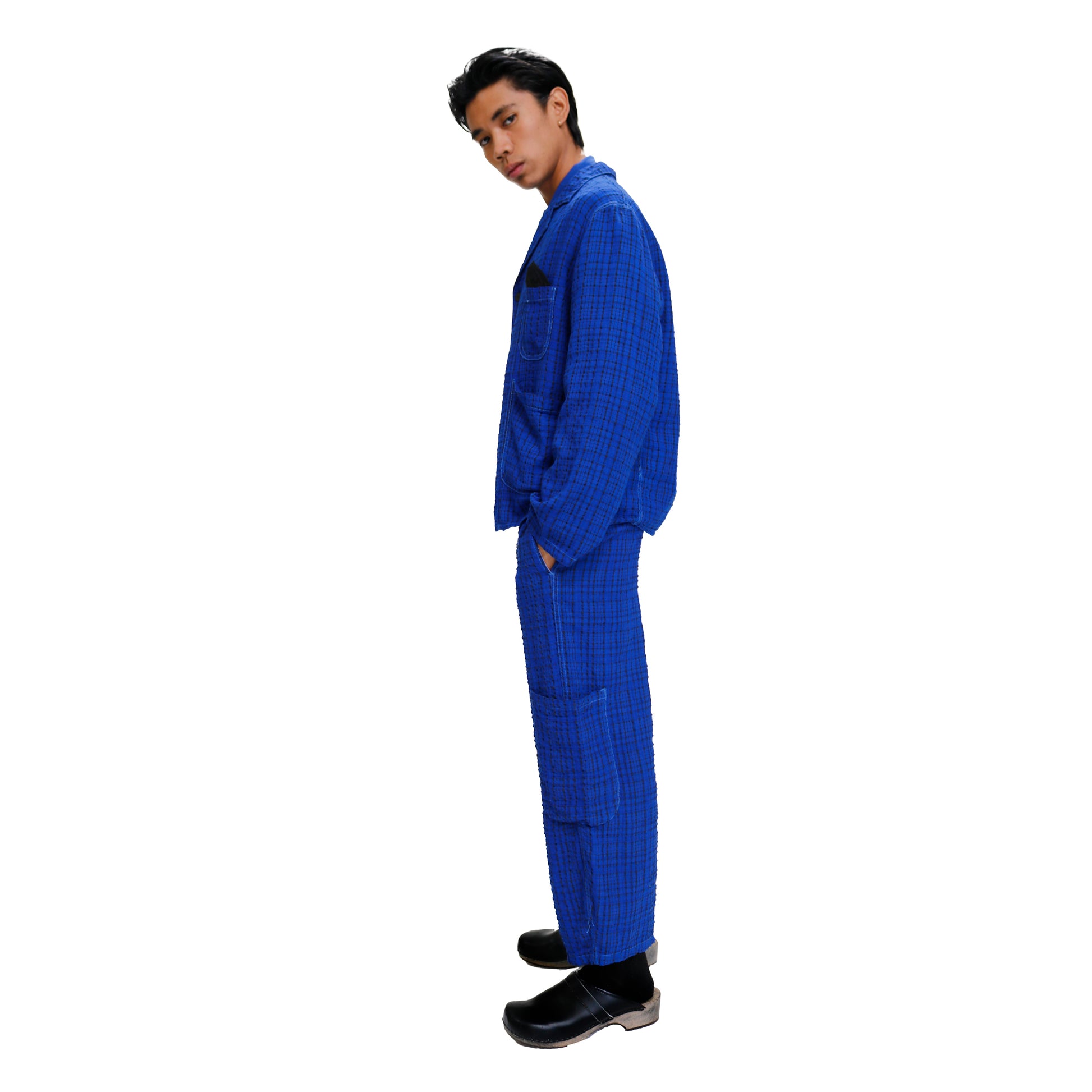 A textured rayon pant, almost like a checkerboard seersucker. Loose and drapey, super breathable. Cropped dining pants with 5 big pockets. Elastic waist + drawstring.