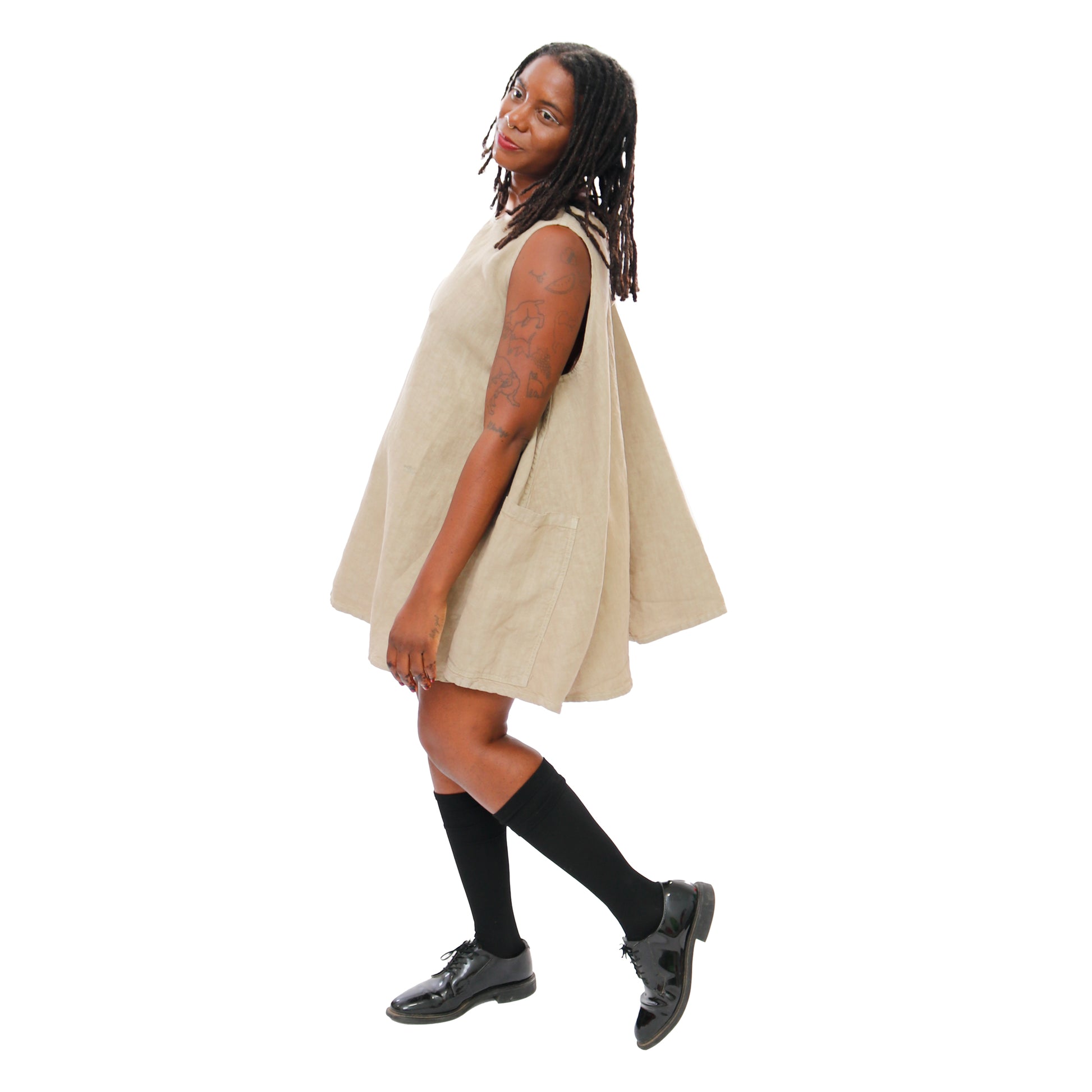 Circle dress with big patch pockets. Slinky linen. You're familiar with linen?? It's a whole thing.