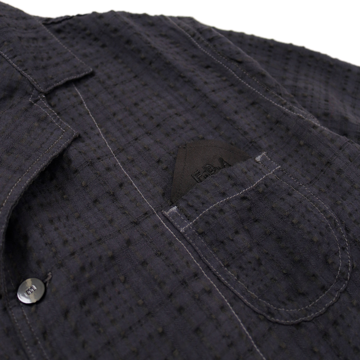 A very textured dinner jacket. Slinky, breathable, unstructured with a soft shoulder. Almost like a checkerboard seersucker. Sleeves are made long for cuffing or altering to customize your length.