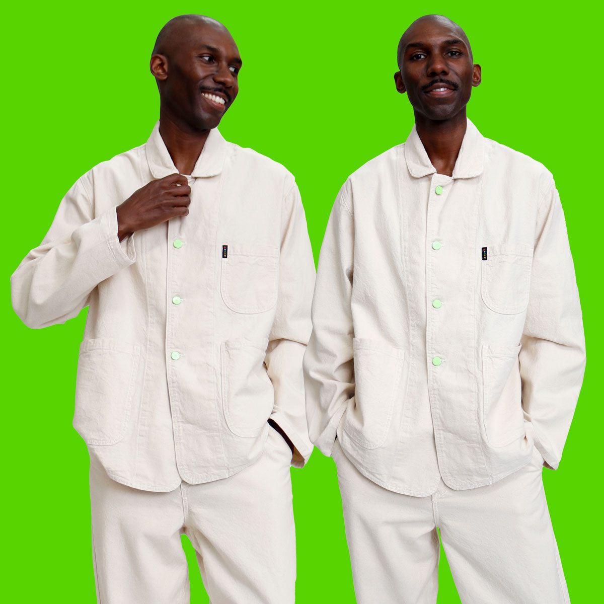 Hearty canvas jacket. Oversized cut. If you would like a more fitted look, order a size down.. Big pockets for sandwiches. Soft-washed un-dyed cotton.