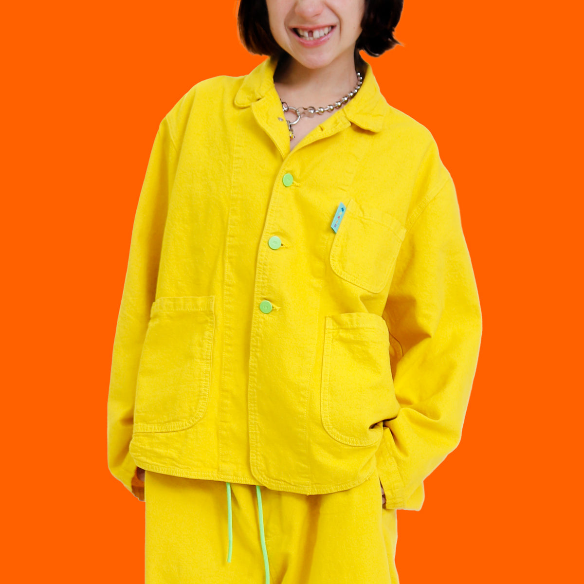 Hearty canvas jacket. Oversized cut. If you would like a more fitted look, order a size down. Big pockets for sandwiches. Soft-washed cotton. Sleeves are made long for cuffing or altering to customize your length.