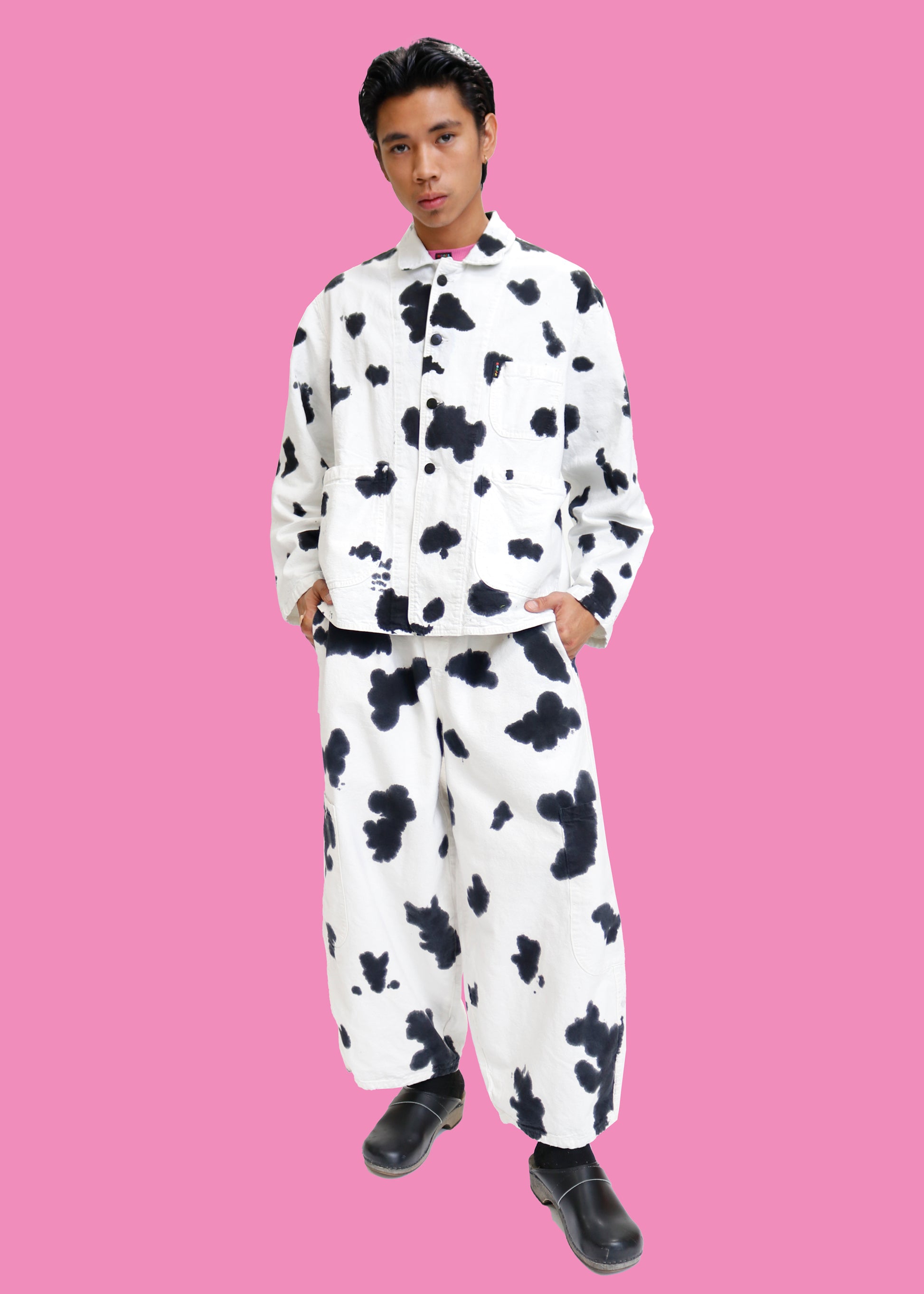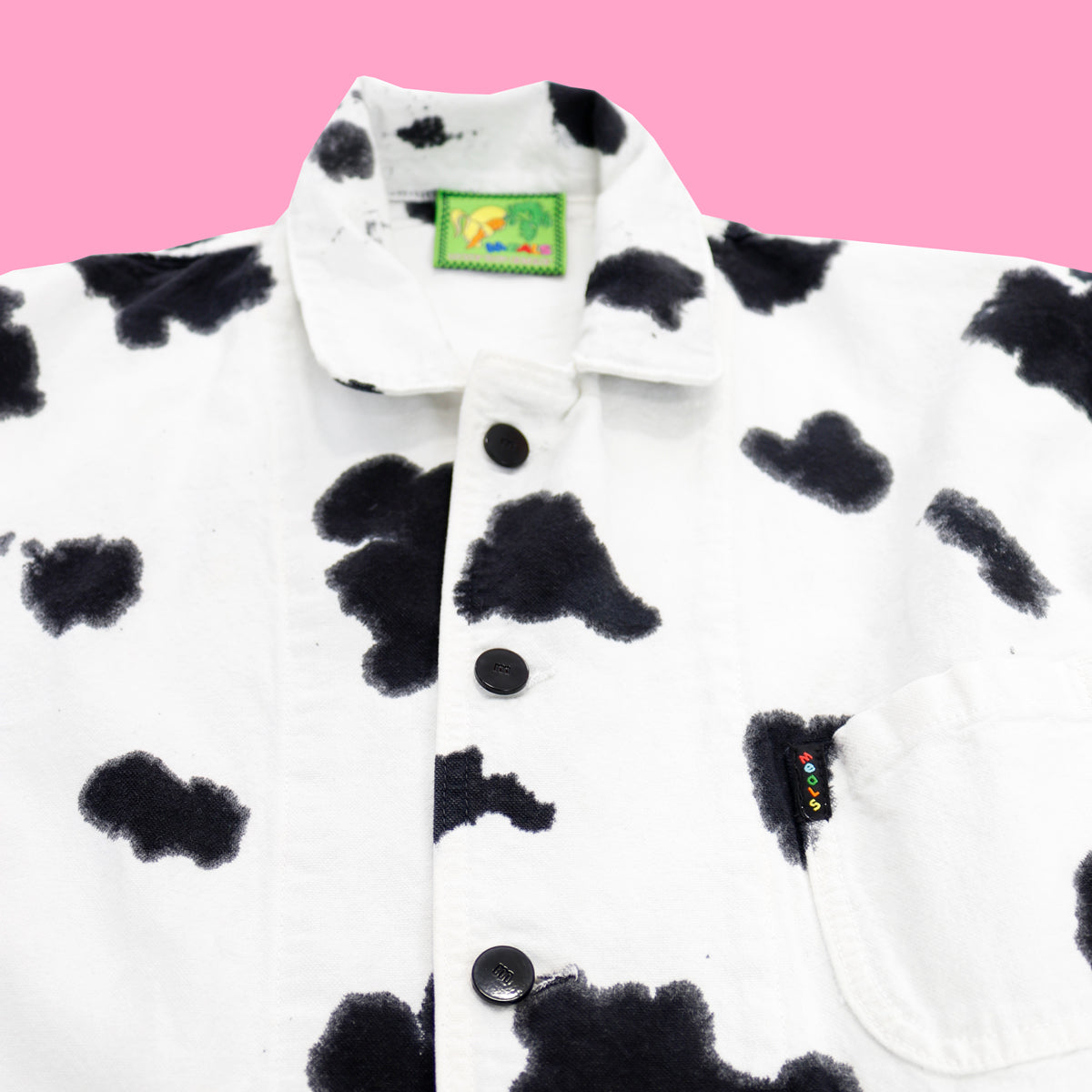 Hearty canvas jacket. Oversized cut. If you would like a more fitted look, order a size down.. Big pockets for sandwiches. Soft-washed cotton. Hand painted licorice checkerboard.