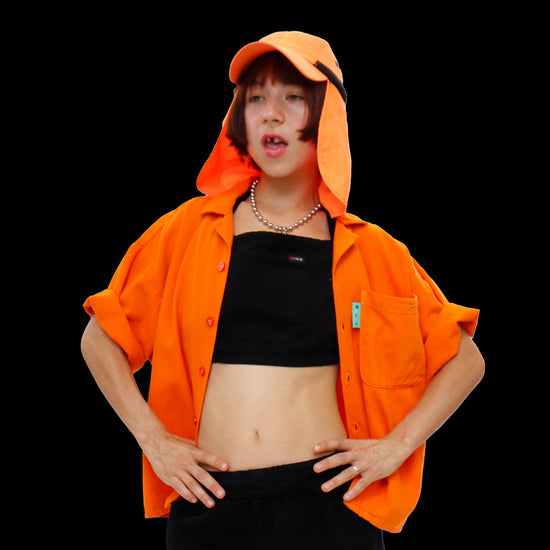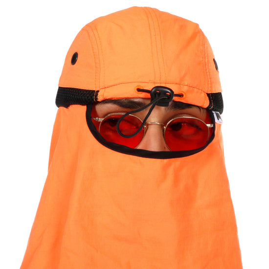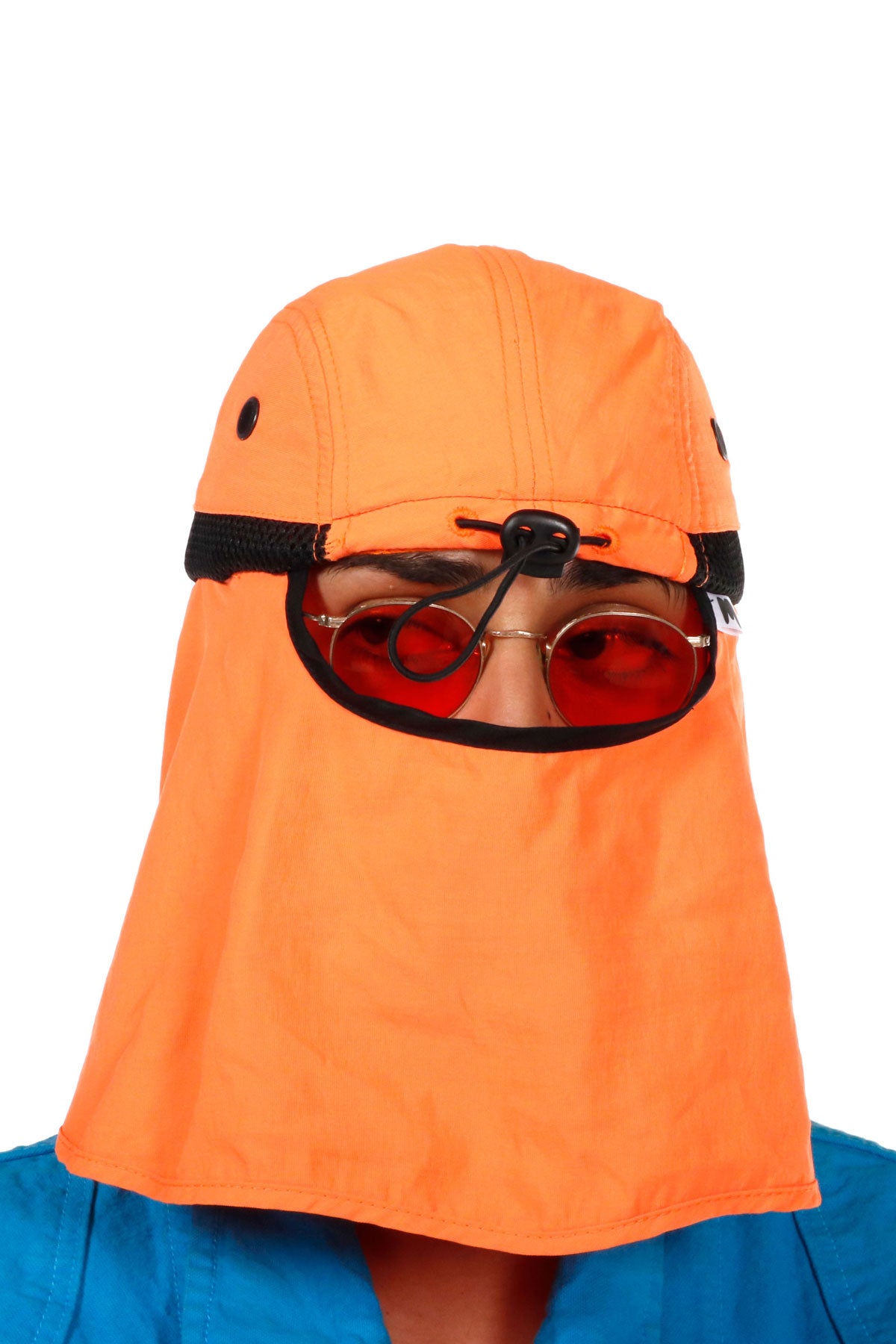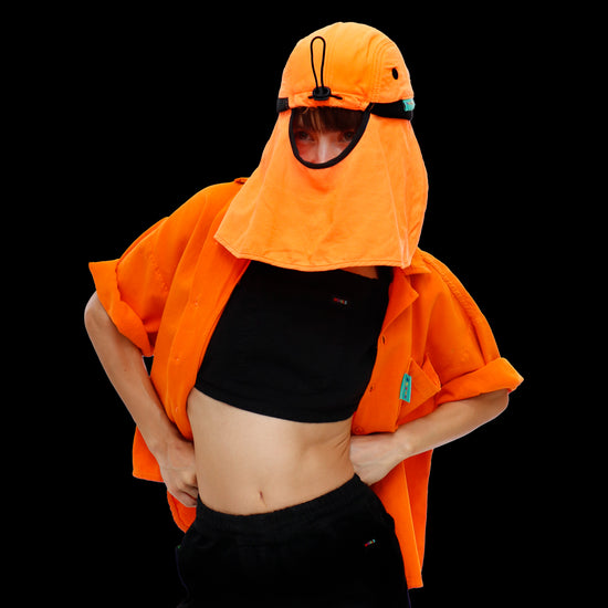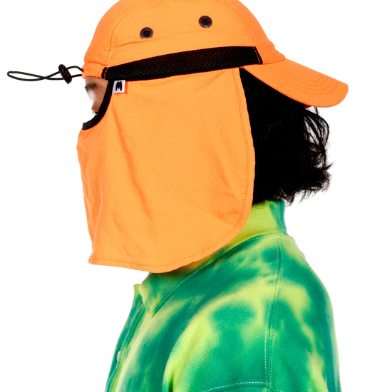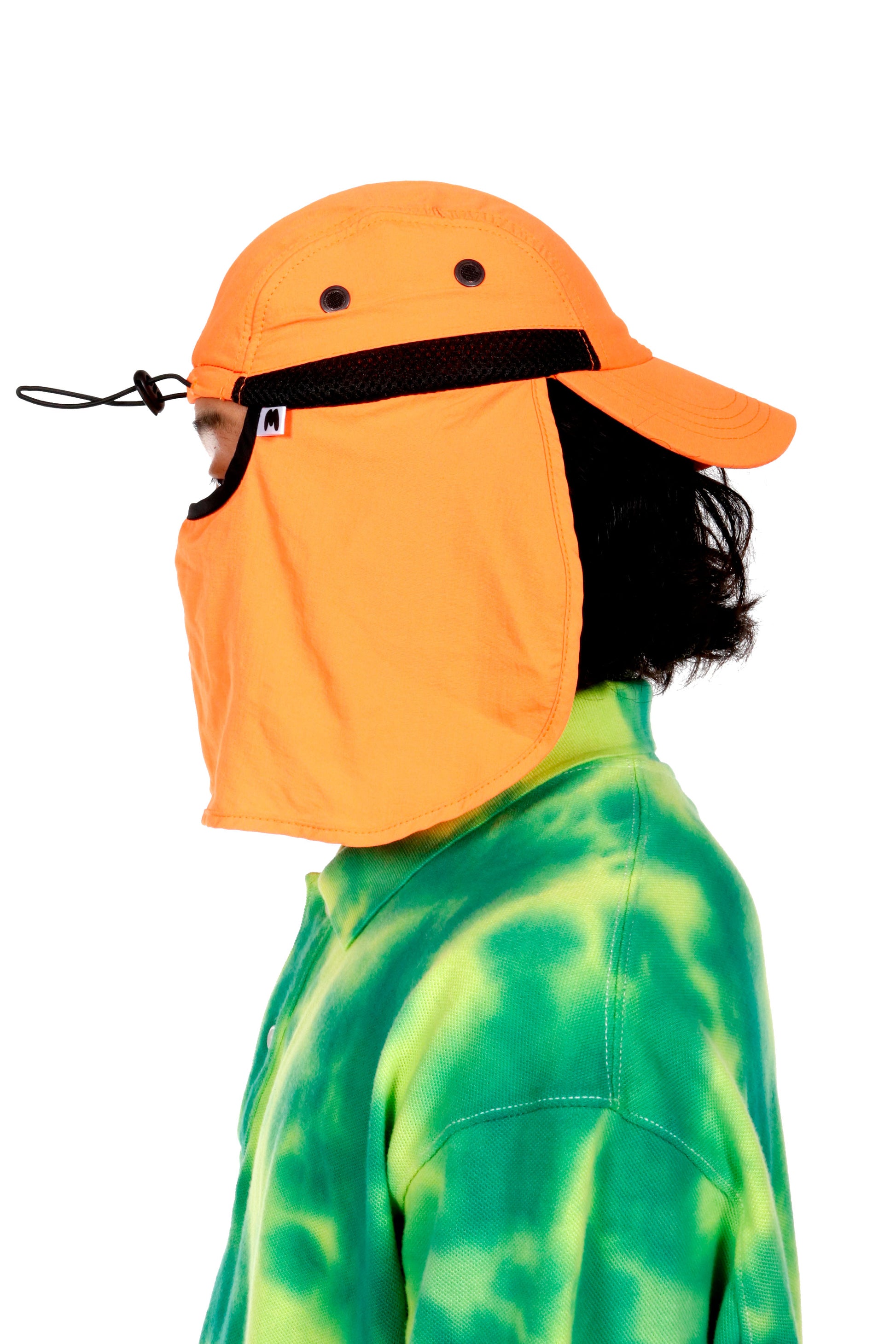 Nylon Mask Hat in Tangerine. Flip it backwards for some lite coverage when you're social distancing outdoors.