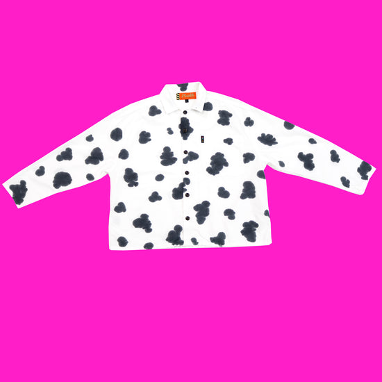 Work shirt: boxy, accommodating, and slightly cropped if you size down. Cut from a sturdy/breathable cotton.