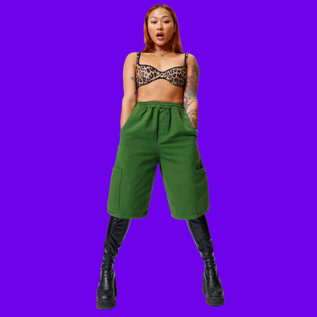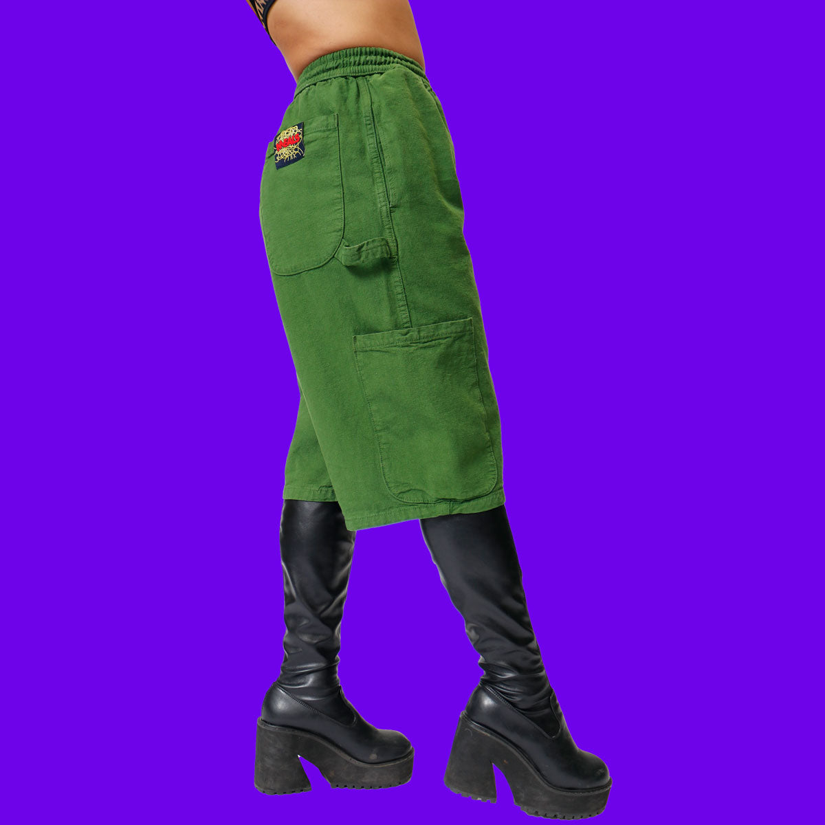- Elastic waist + neon green drawstring
